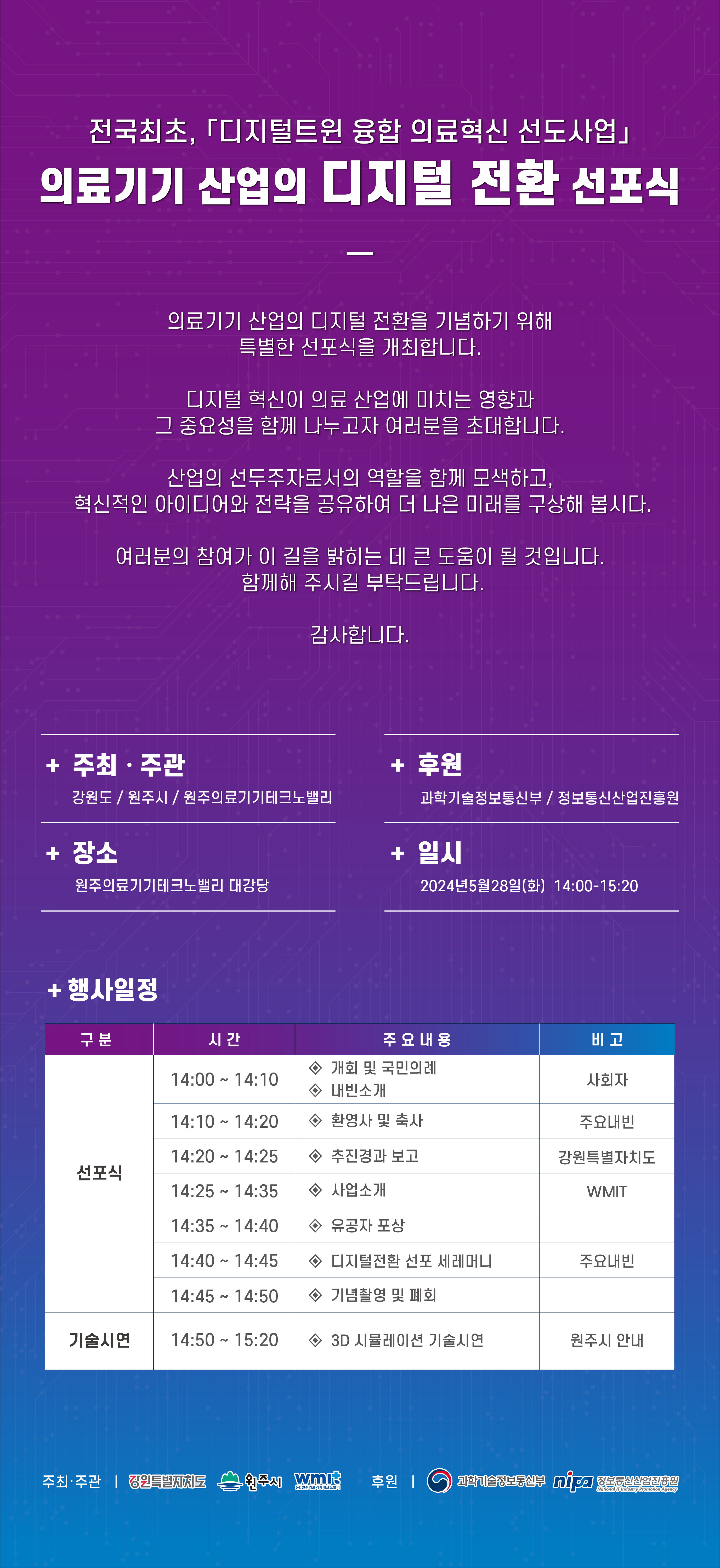 의료기기 산업의 디지털 전환을 기념하기 위해 아래와 같이 선포식을 개최합니다.