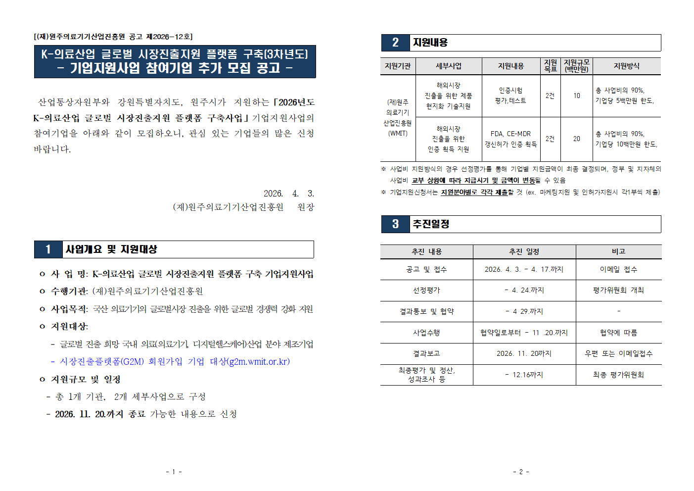 K-의료산업 글로벌 시장진출지원 플랫폼 구축 기업지원사업(3차년도) 참여기업 추가모집 공고